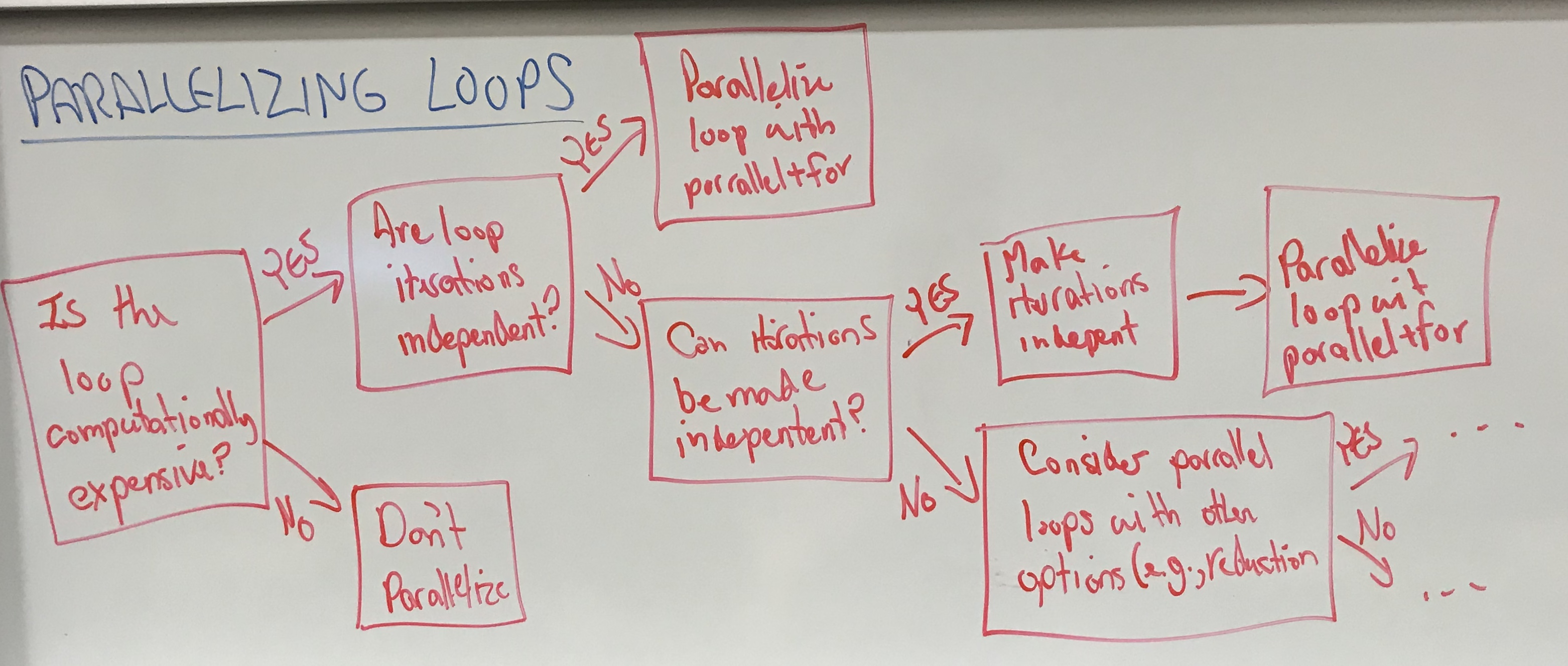 - loop_if_clause.c – an if clause can be added to a parallel construct and allows for code to be parallelized under some conditions (e.g., a high number of threads) and not parallelized under other conditions (e.g., a low number of threads).