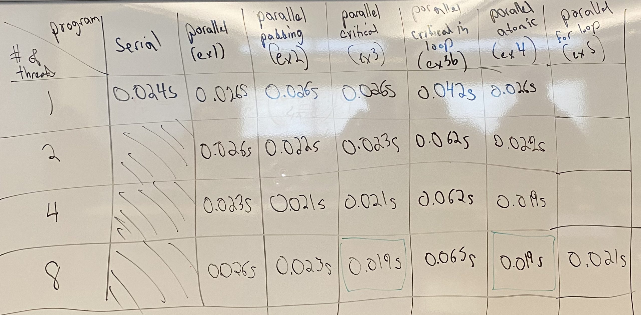 - pi_parallel_ex3b.c – the danger of placing critical regions in loops is demonstrated in this program. This is not a best practice :).